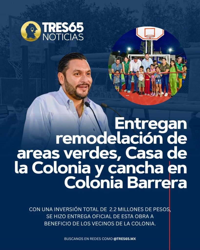 Autoridades locales hicieron entrega oficial de la remodelación de la Casa de la Colonia, el área verde y la cancha de usos múltiples en la Colonia Barrera, como parte del Plan de Inversión Prendamos Monclova, con una inversión total de 2.2 millones de pesos.