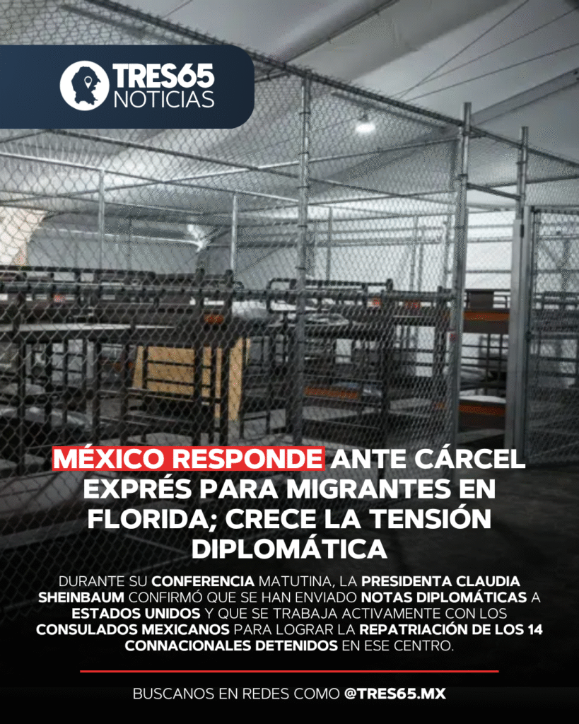 El Gobierno de México ha intensificado sus gestiones diplomáticas tras la apertura del centro de detención migratoria conocido como “Alligator Alcatraz”, en las afueras de Miami, Florida. La instalación, construida en tan solo dos semanas sobre una antigua pista aérea, tiene capacidad para albergar hasta 5,000 personas y ya se encuentra en operación desde inicios de julio.